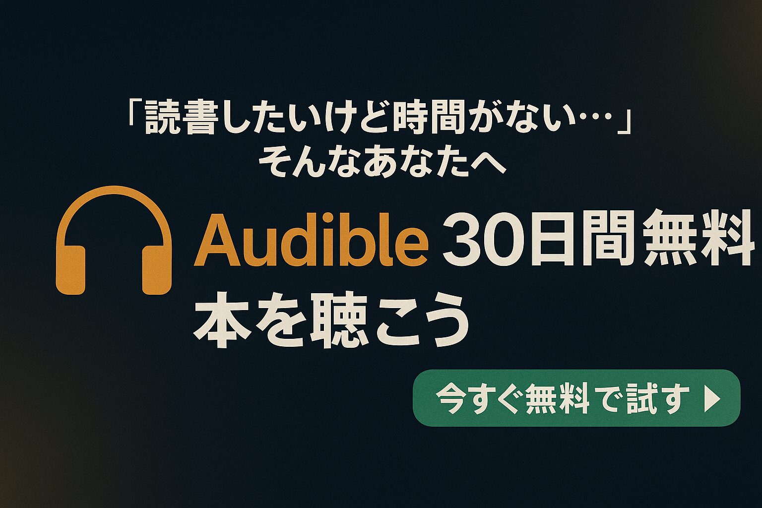 Audibleは30日間完全無料でお試しできるので、リスクはゼロです。