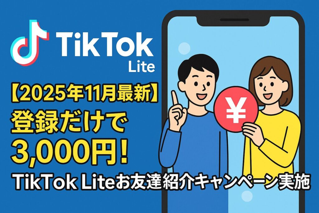 本記事では、TikTok Lite お友達紹介キャンペーン(3,000円)の最新情報をわかりやすく解説します。対象・手順・注意点・よくある質問まで網羅し、最短でポイントを受け取るコツをまとめました。 【2025年11月最新】登録だけで3,000円!TikTok Liteお友達...